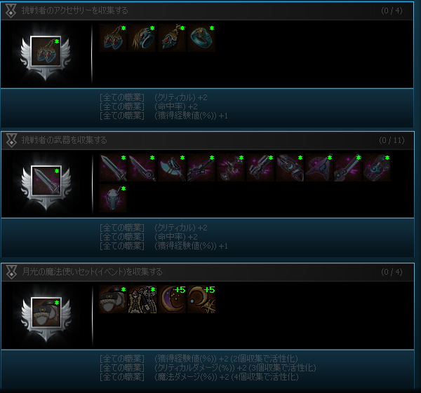 関連の新規図鑑だがー上2つはアトパスで貰えるもんだけで揃うぽいね。最後の月光セットのは+5にしんといかんのでーアトパスだけでは無理な気がする・・・